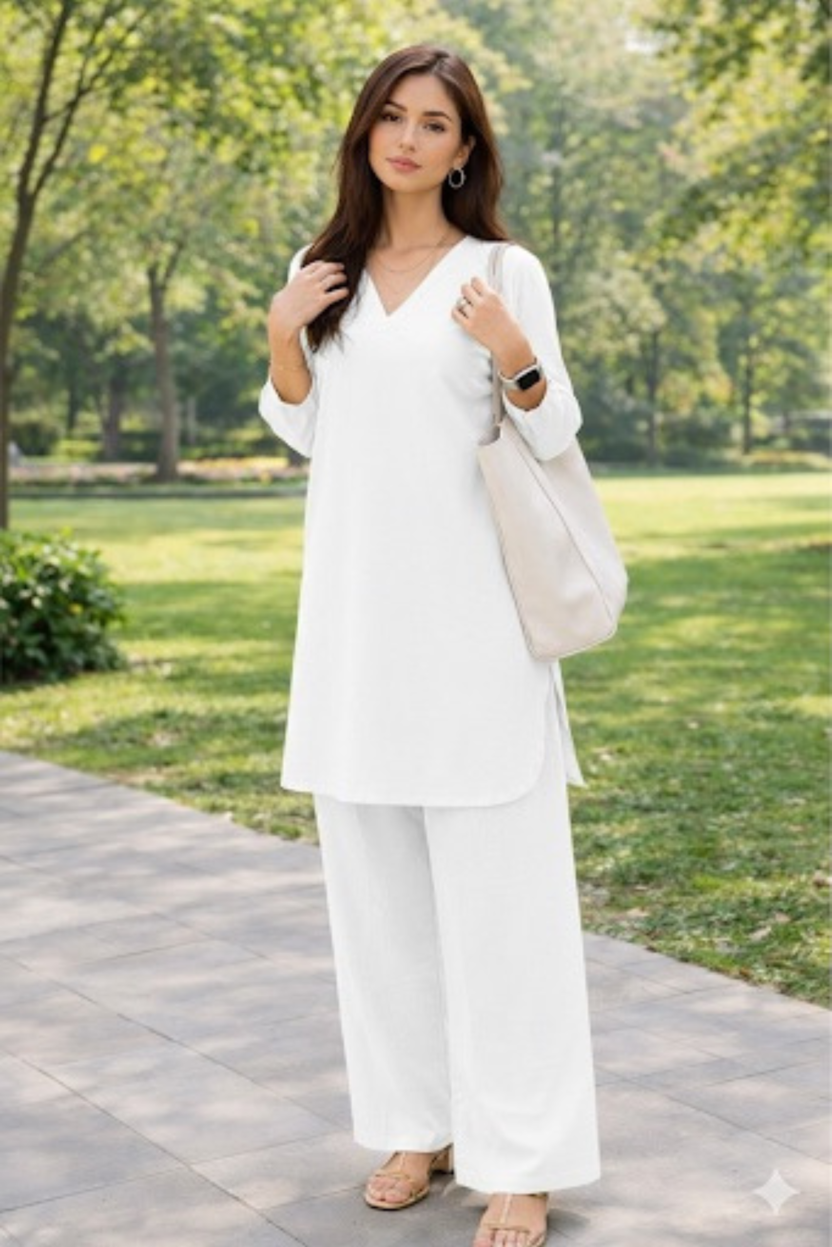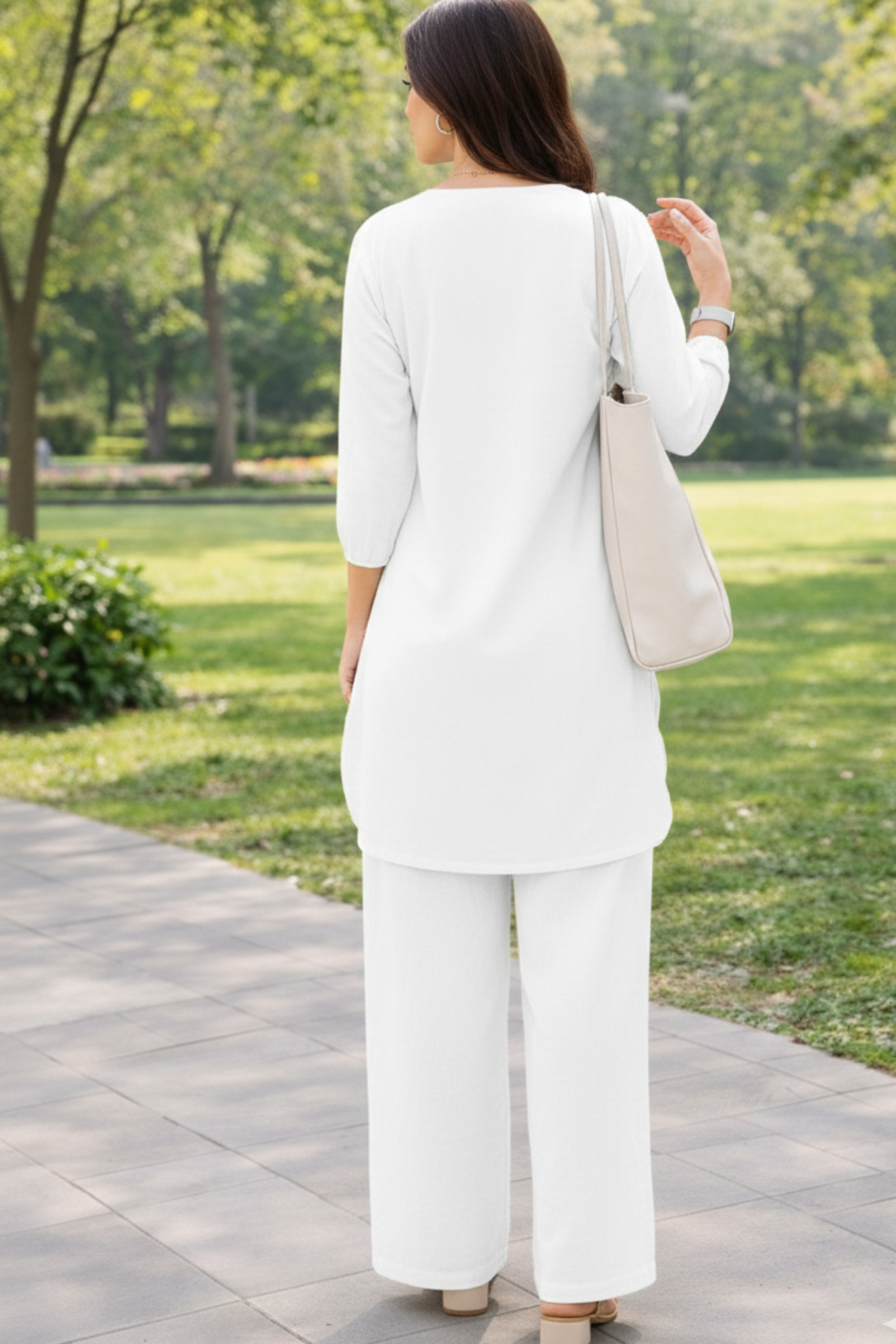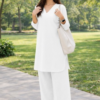 Minimal yet impactful our Elegant White linen coord set is your go-to for creating serene, polished looks. Crafted in pure linen, it promises lightweight comfort and an airy feel, making it perfect for warm days. Whether styled for a casual meeting, a weekend getaway, or a relaxed evening out, this white coord set elevates your style with effortless sophistication. Pair it with statement jewelry or let the simplicity shine on its own.