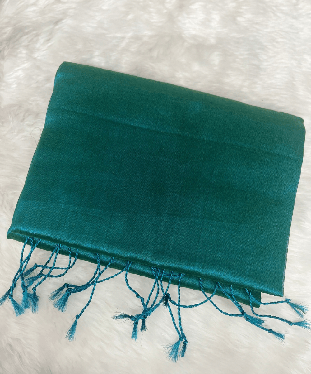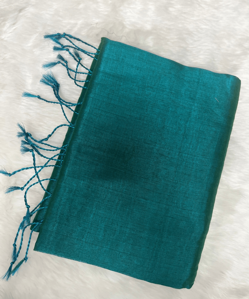 Drape yourself in the regal elegance of our Metallic Green with hints of teal and blue Cotton Tissue Saree, a celebration of simplicity and opulence. Crafted from the exquisite Cotton & Tissue fabric, this saree stands at 43 inches, offering a lightweight and graceful drape. With a length of 5.3 meters, the saree unfolds as a canvas of timeless sophistication. Paired with an 80 cm red plain running blouse, this ensemble is a seamless blend of classic charm and modern style. Care for this piece with a gentle dry wash to maintain its exquisite allure. Join our exclusive group and immerse yourself in the enduring charm of this resplendent creation.