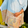 Soft, soothing and graceful — this Powder Blue Semi Pashmina Shawl features a beautifully woven pastel paisley border that adds charm without overpowering the solid base.