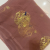 Step into graceful sophistication with the Skin Brown Sajda-E-Husn Rajputana Saree, crafted in soft georgette for a fluid drape that speaks of timeless charm. The saree is elevated with golden peacock motifs, sequin embellishments, and goose thread embroidery, embodying Rajputana artistry in every fold. With a height of 43 inches and a length of 5.3 meters, it is paired with an 80 cm running blouse piece for styling versatility. Ideal for festive and traditional occasions, this saree offers a royal aura with subtle elegance.