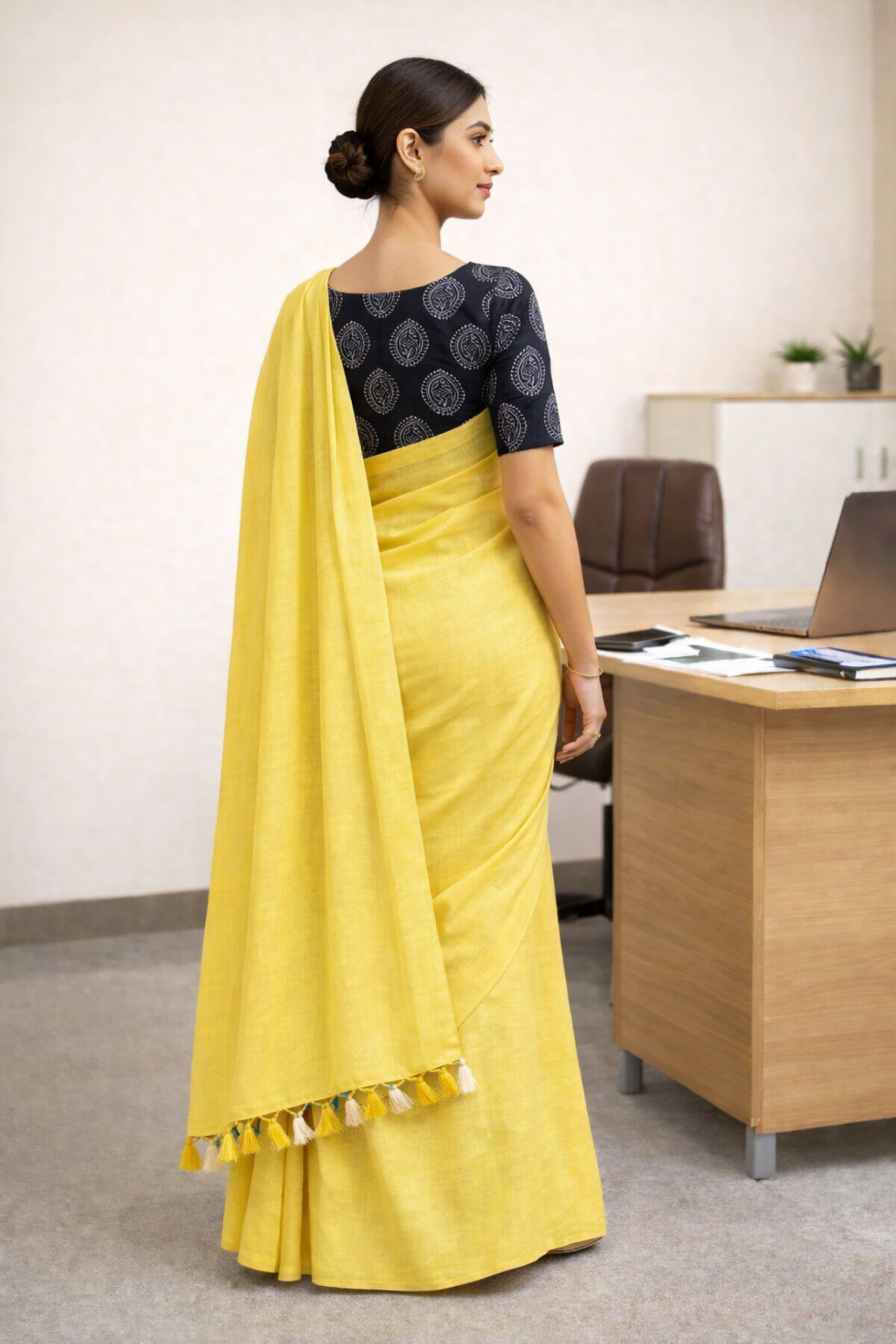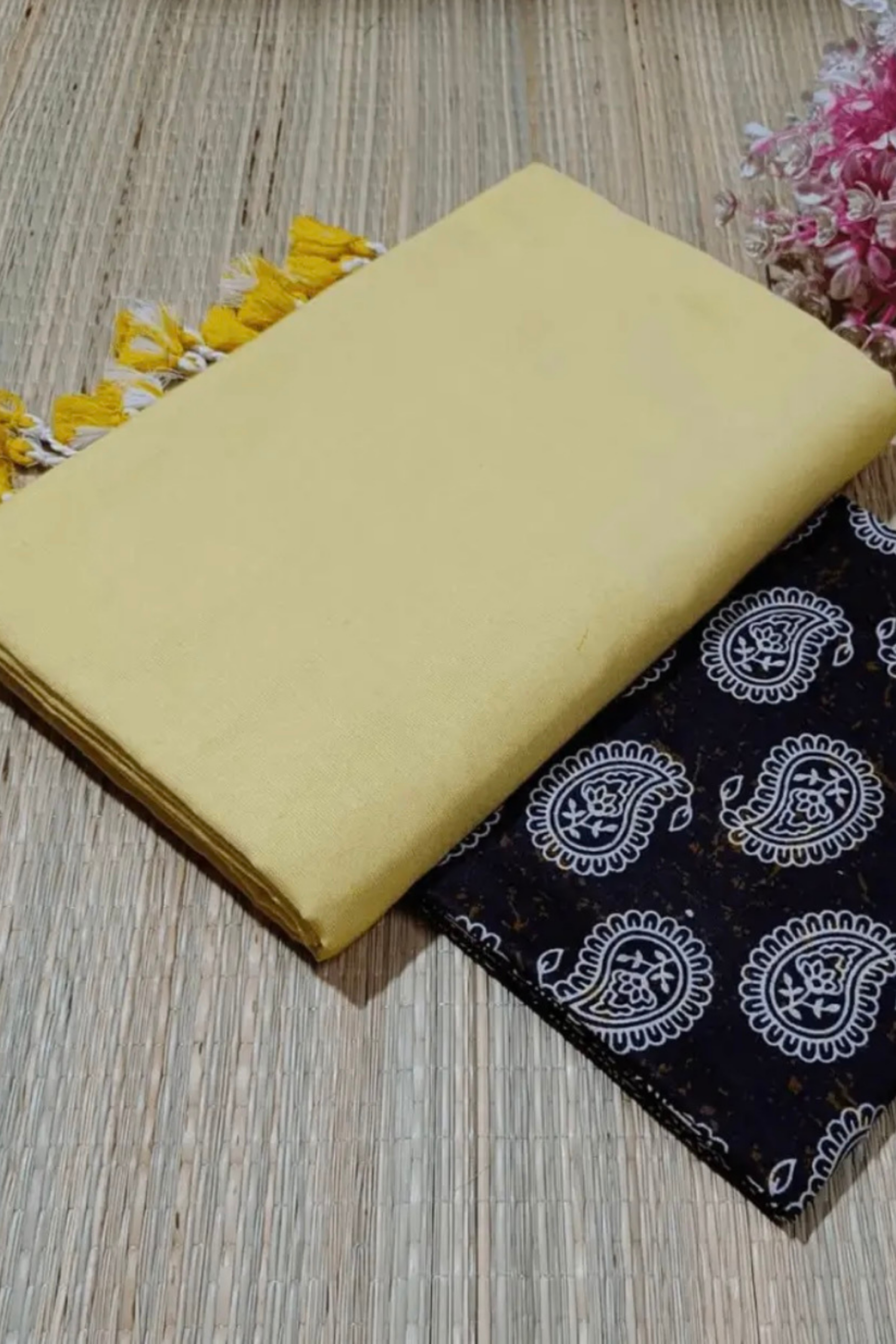 Step into effortless elegance with our Yellow Plain Khadi Cotton Saree. Crafted from soft and breathable cotton-by-cotton khadi fabric, this saree comes in a 5.5-meter length, accompanied by a matching running blouse piece along with an extra Kalamkari printed blouse piece for versatile styling. Lightweight and comfortable, it’s perfect for daily wear, casual outings, or festive moments.